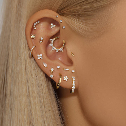 14K Gold Double Zircon Stud Earrings – Stackable & Dainty Sparkle