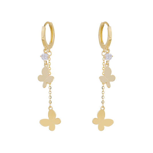 14K Solid Gold Butterfly Tassel Piercing Earrings – Dangle Studs for Helix, Cartilage & Lobe (Pair)