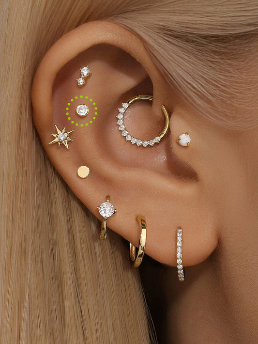 14K Gold Beaded Zircon Piercing Stud – Single Sparkle for Ear Stacks