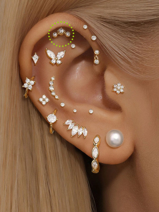 14K Solid Gold Triple Crystal Threaded Stud – Elegant Piercing for Stacked Ears