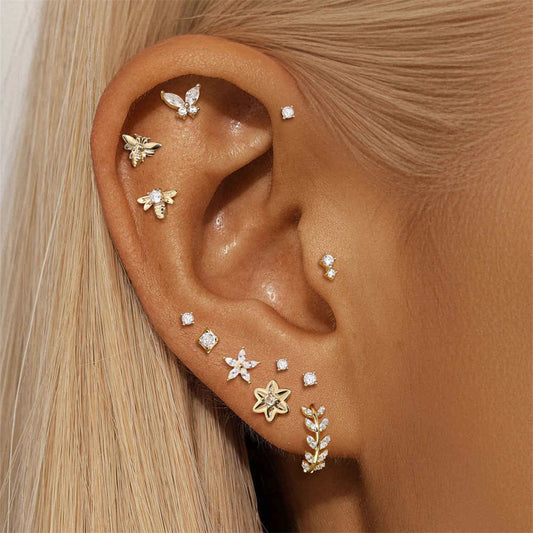 14K Solid Gold Insect Animal Stud Earrings – Dainty Bee & Butterfly-Inspired Design