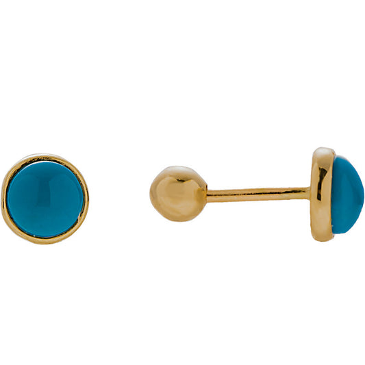 14K Solid Gold Round Turquoise Threaded ball Earring studs