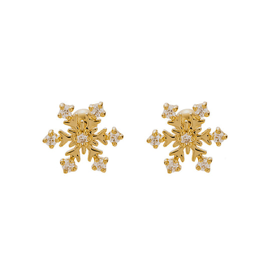 14K Yellow Gold Snowflake Moissanite Stud – Threaded Ball Back Piercing