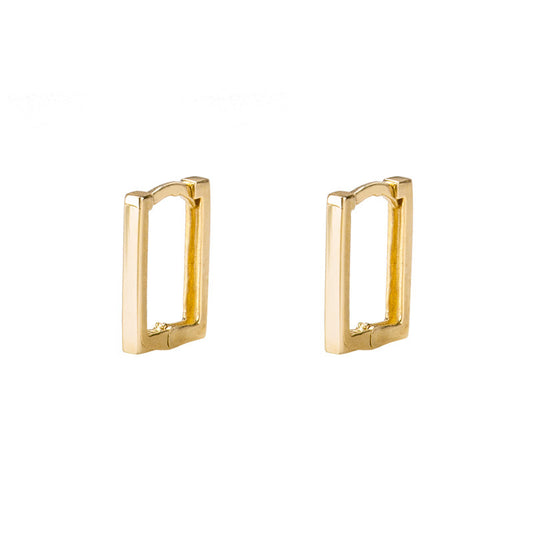 14K Solid Gold Glossy Square Earrings – Minimalist Polished Studs