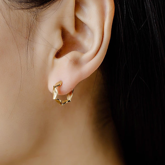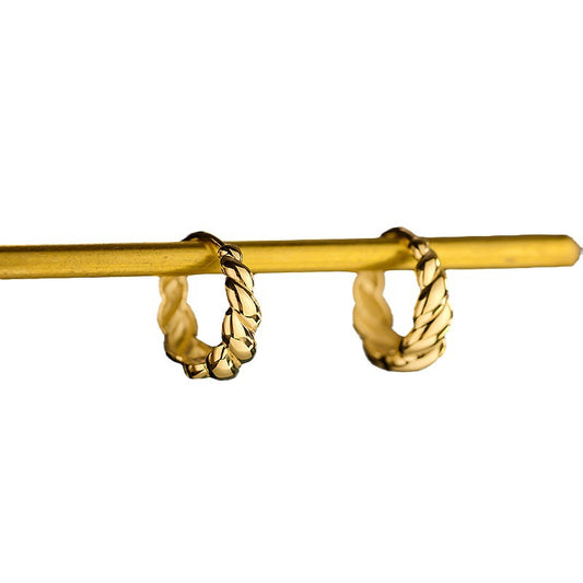 14K Solid Gold Twisted Hoop Earrings – Minimalist Shiny Spiral Design for Everyday Glam