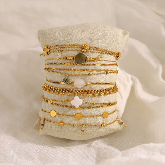 18K Gold Plated Titanium Steel Sunflower, Bow, Heart, and Four-Leaf Clover Layered Bracelet | Fashion JewelryRegular price $6.74 USDRegular priceUnit price / per$6.74 USDSale price $6.74 USD