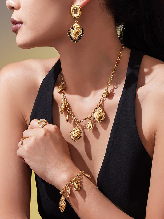Hollow Heart Zircon Stainless Steel Necklace Bracelet Anklet Earrings – Minimalist Romantic Jewelry Set
