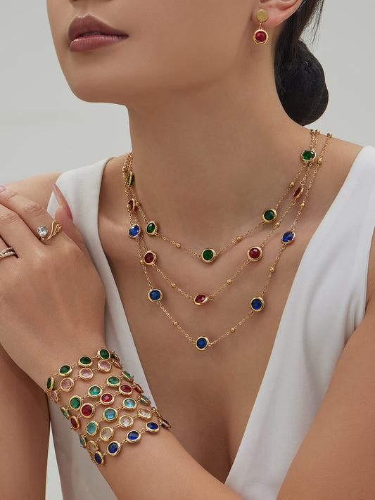 Candy Color Glass Stone Jewelry Set – Stainless Steel Necklaces, Bracelets & Earrings