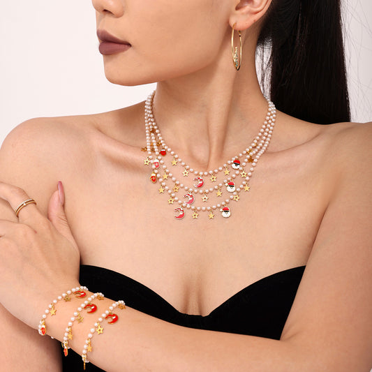 Christmas Santa Hat Star Gloves Pendant Necklace & Bracelet Set – Gold Plated Stainless Steel with Faux Pearl & EnamelRegular price From $6.95 USDRegular priceUnit price / per-