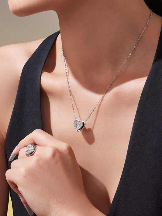 Stainless Steel Heart Jewelry Set – Zircon Heart Necklace, Earrings & Ring Set | Romantic Gift Set