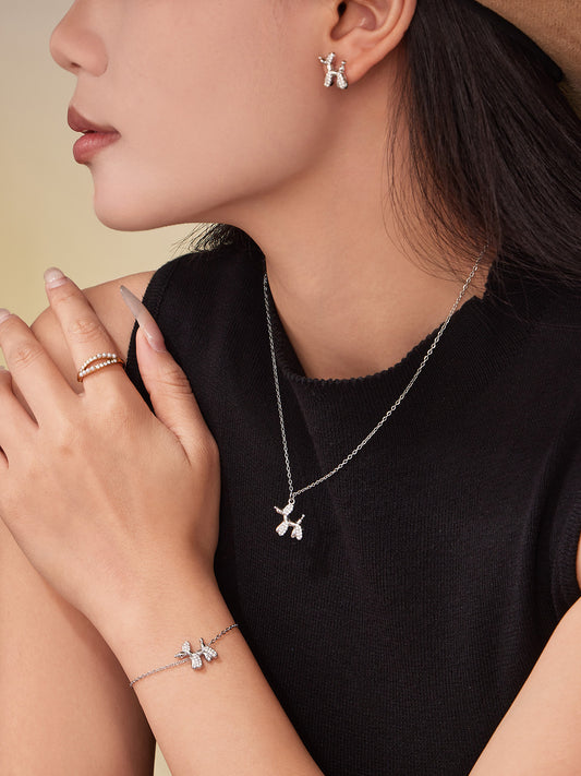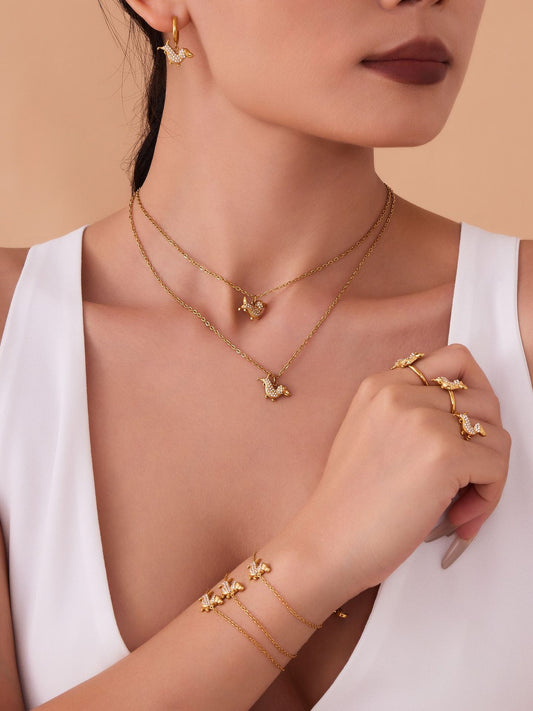 Stainless Steel Dog Zircon Jewelry Set – Necklace, Bracelet, Ring & Earrings | Cute Minimalist Fashion Jewelry | WANTI
