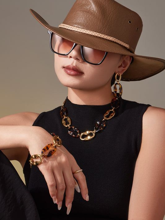 Geometric Resin Jewelry Set – Stainless Steel Necklace Bracelet Earrings | Chic Fashion Statement Set for Women