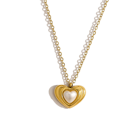 18K Gold Plated Titanium Steel Vintage Heart Shaped Pearl Black Stone Pendant NecklaceRegular price $3.64 USDRegular priceUnit price / per-