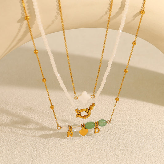 18K Gold Plated Titanium Steel Oval Flower Pendant Double Layer Beaded Necklace | Elegant Fashion Jewelry SetRegular price From $2.94 USDRegular priceUnit price / per-