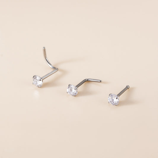 G23 Titanium Nose Stud with Zircon | F136 Straight, L & Screw Nose Piercing Jewelry