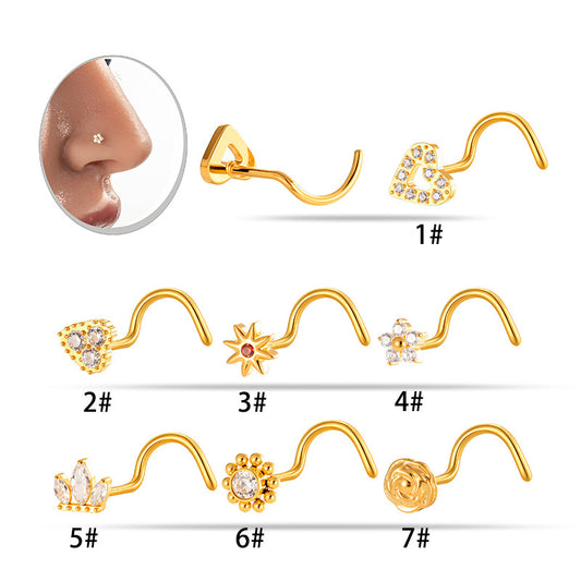 F136 Titanium Zircon Nose Stud | S-Shaped Rod Nose Piercing Jewelry | Fashionable & Durable