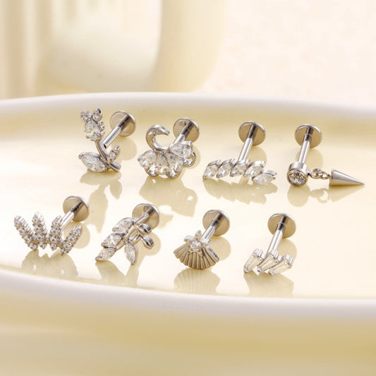 F136 Titanium Zircon Piercing Jewelry – Geometric & Nature-Inspired Internally Threaded Lip & Cartilage StudsRegular price From $5.12 USDRegular priceUnit price / per-