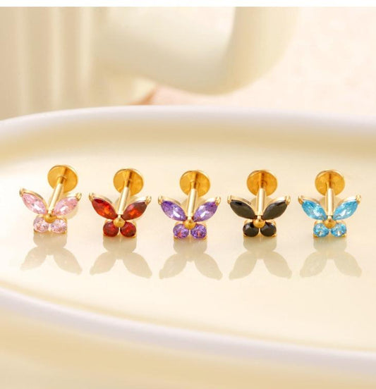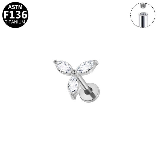 F136 Titanium Butterfly Zirconia Piercing - 1.2*8mm Lip & Cartilage Stud with Internal ThreadRegular price From $5.81 USDRegular priceUnit price / per-