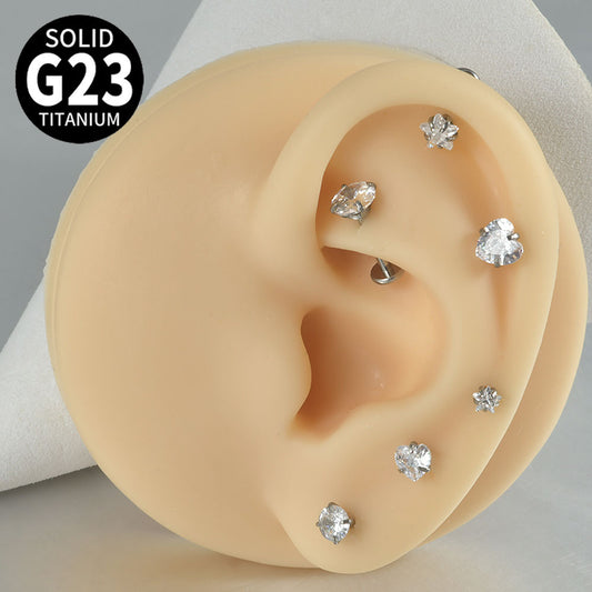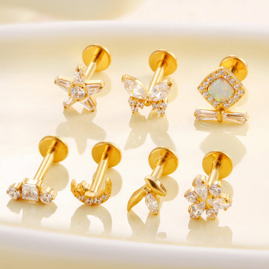 G23 Titanium Zircon-Set Butterfly, Heart, Pyramid, Star Internal Thread Lip & Cartilage Piercing EarringsRegular price From $5.57 USDRegular priceUnit price / per-