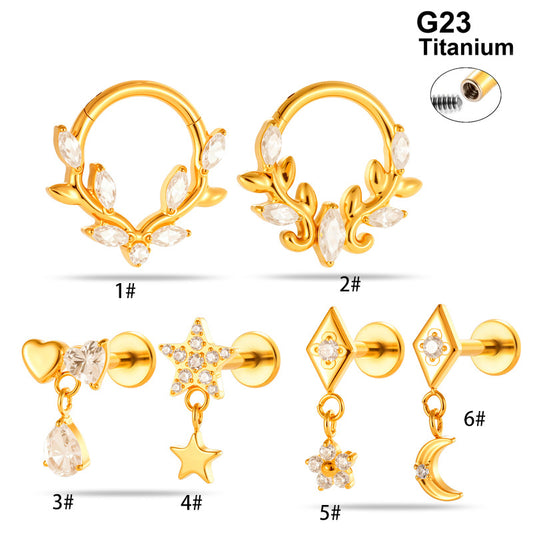 F136 Titanium Internally Threaded CZ Ear Stud – Music Note, Fan, Moon & Cluster Designs | Lip Labret Cartilage Piercing Jewelry