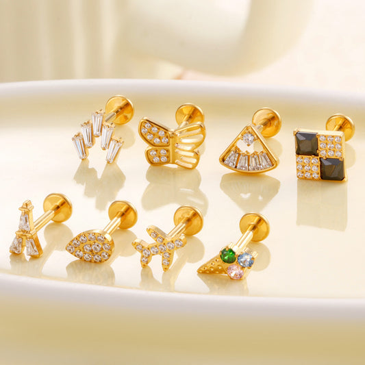 G23/F136 Titanium Zircon Piercing Studs | Internally Threaded Lip Labret & Cartilage Jewelry for Sensitive Skin