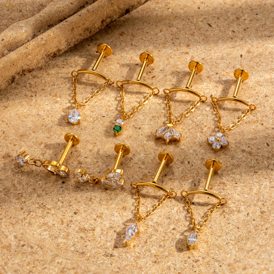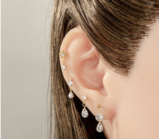 Titanium Zirconia Dangle Piercing Earrings – One-Piece Clasp Design for Earlobe & Cartilage