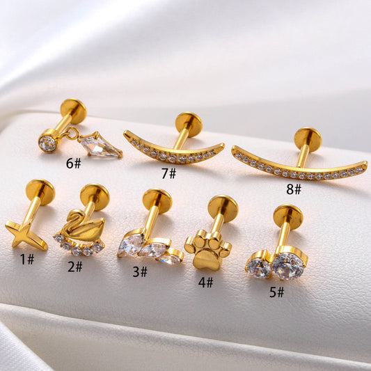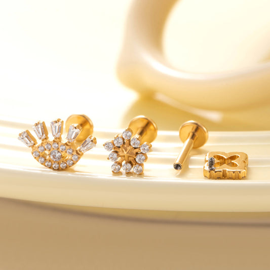 Titanium Screw‑In Flat‑Back Stud with Zircon – Hypoallergenic Piercing Jewelry