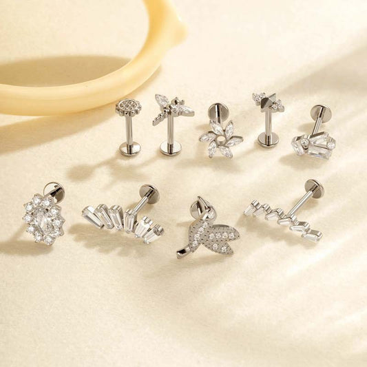 F136 Titanium Internally Threaded CZ Cartilage Stud Earrings – Flat Back Piercing Jewelry