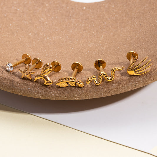 Titanium Starfish Feather Palm Snake Piercing Earrings Studs