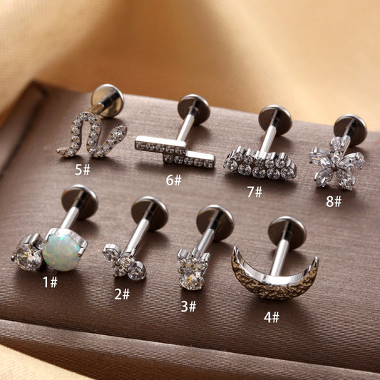 Titanium Zircon Piercing Internal Screw Rod Ear Bone Studs