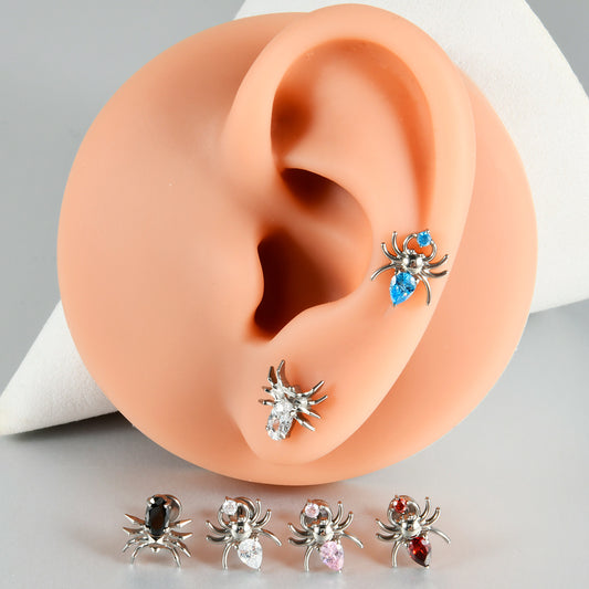 Black/Pink/Clear Zircon Spiders Threadless Ear stud Labret