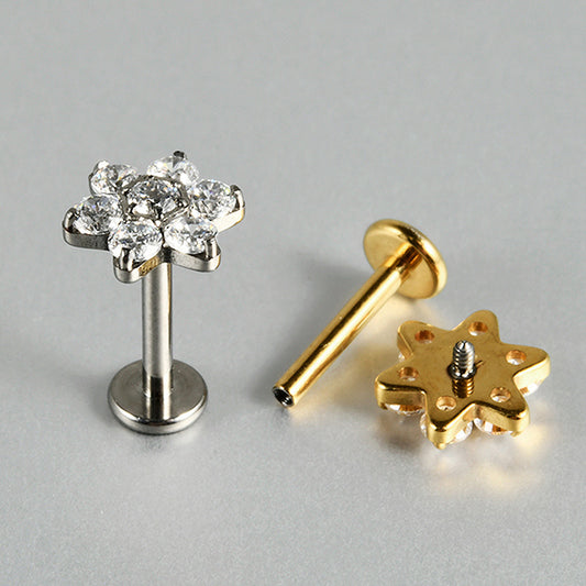 6 Zircon Flowers Flatback Labret Ear stud Piercing