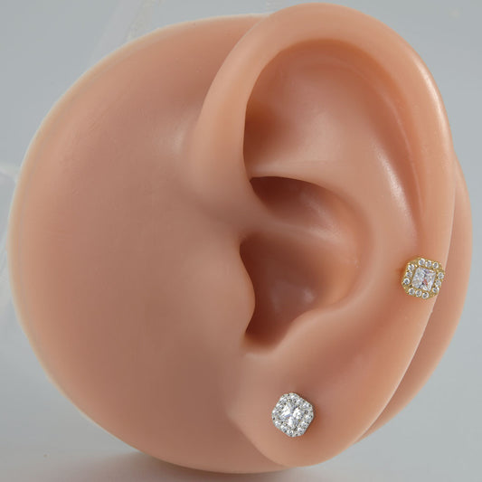 Big square Zircon Stone Labret Threadless Tragus Ear loops