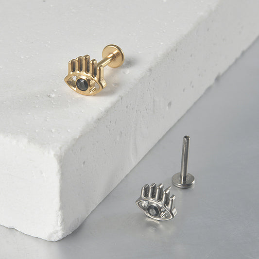 Big Devil Eyes Black stone Flatback Push-in Pin Labret Tragus Piercing