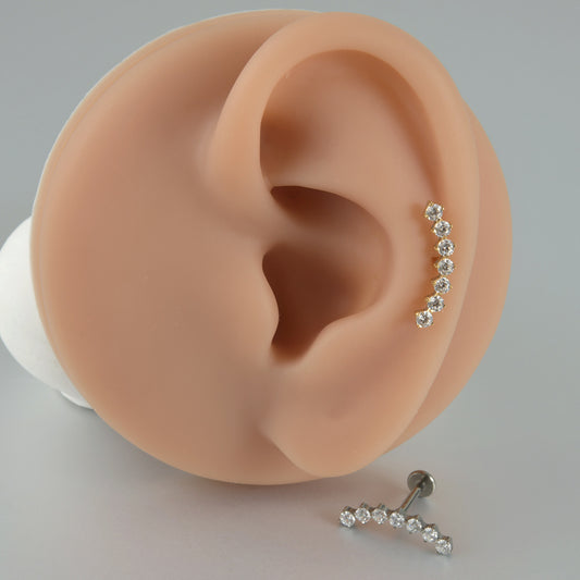Big Long Seven / Nine Crystal stones Curved Threadless Tragus Ear Piercing