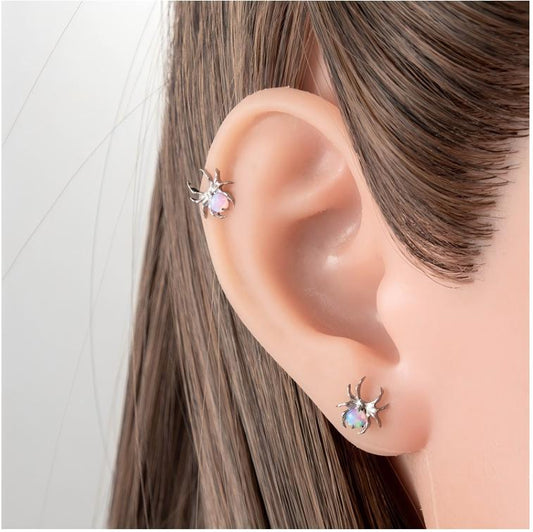 G23/F136 Titanium Opal Spider Labret Stud – 1.2×8MM Internally Threaded Cartilage Piercing Jewelry | Hypoallergenic Lip & Ear Piercing