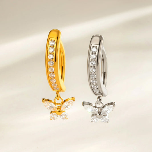 G23/F136 Titanium Butterfly Dangle Navel Ring with Zircon — Hypoallergenic Belly Button Piercing Jewelry in Gold & Silver