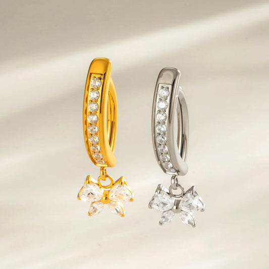 G23/F136 Titanium Heart Zircon Bow Dangle Navel Ring Belly Button Piercing Jewelry – Gold & Silver