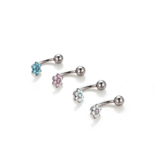 G23 Titanium CZ Flower Belly Button Ring – Internally Threaded Navel Piercing Jewelry