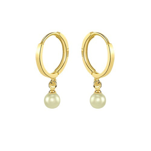 14K Solid Gold Huggie Hoop Earrings with 3mm Freshwater Pearl Pendant – Timeless Elegance