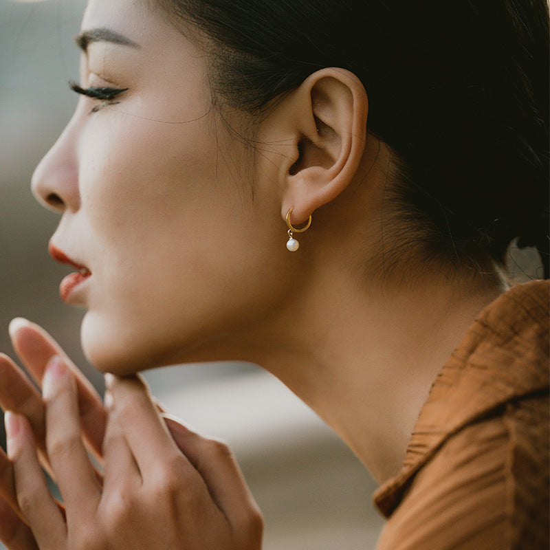 Delicate, radiant, and enduring — these 14K solid gold huggie earrings are adorned with a luminous 3mm freshwater pearl, bringing effortless elegance to your daily wear or special moments.