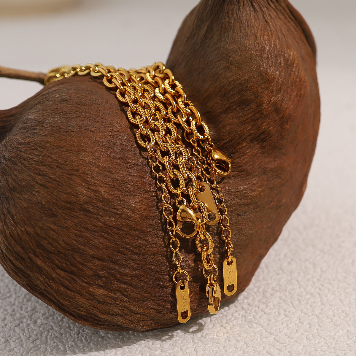Make a statement with our 18K Gold Plated Stainless Steel Cross Chunky Chain Bracelet — a bold piece that merges strength and sophistication. Designed for women who love luxury with attitude, this bracelet elevates any look with its modern edge and high-end shine.