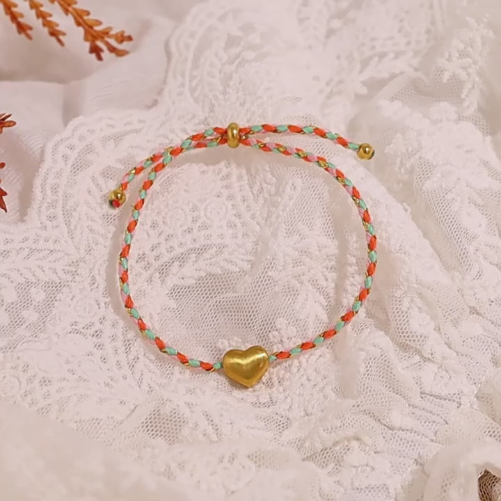 18K Gold Plated Titanium Steel Heart Pendant with Colorful Woven Cotton Cord | Stylish & Trendy Jewelry