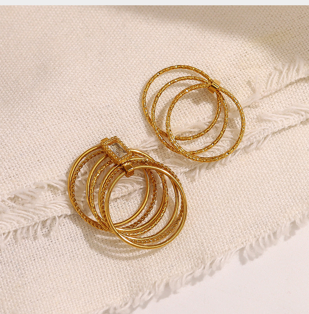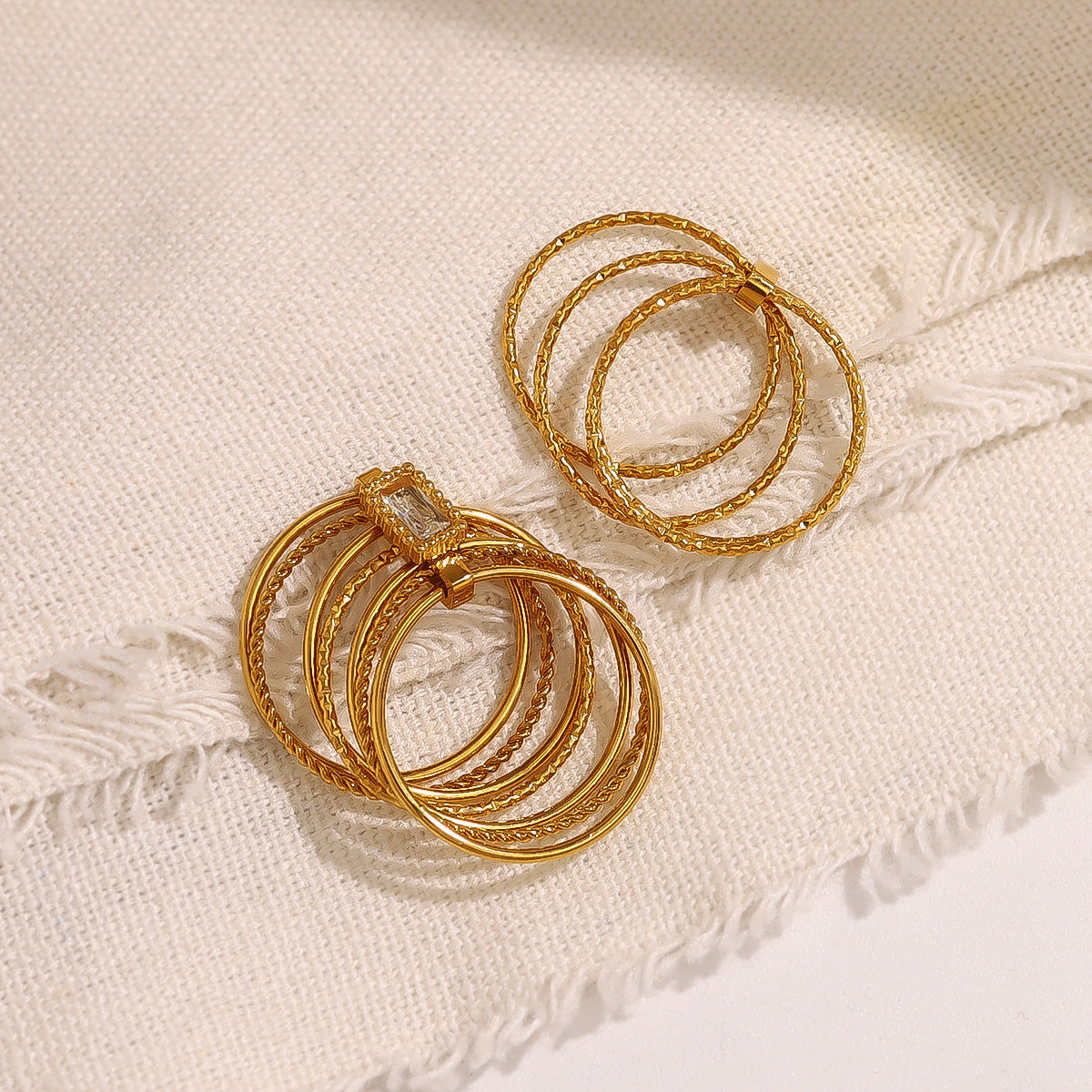 18K Gold Plated Titanium Steel Multi-Layered Ring | Bold Design with Zircon, Stainless Steel