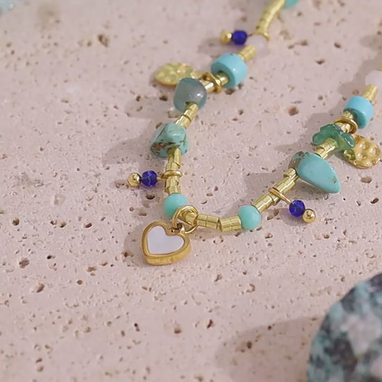 18K Gold Plated Titanium Steel Ocean Style Heart Pendant Necklace with Turquoise