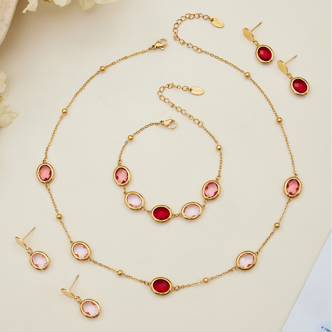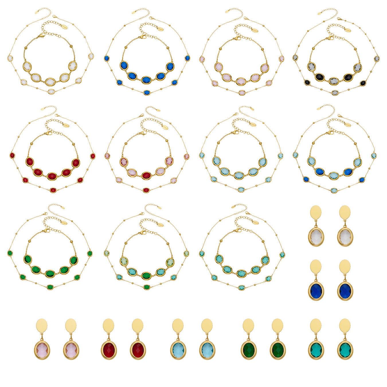 Candy Color Oval Glass Stone Necklace, Bracelet & Earrings Set – Stainless Steel | Fashion Jewelry | Colorful Minimalist Accessories