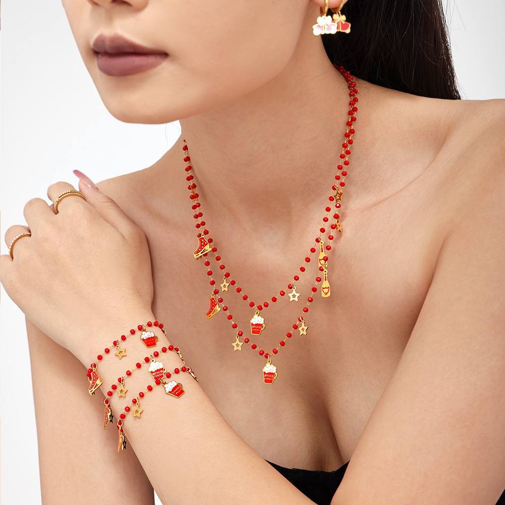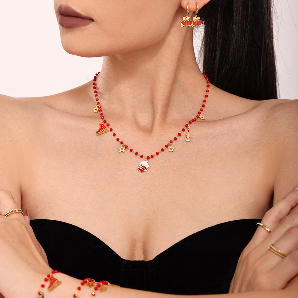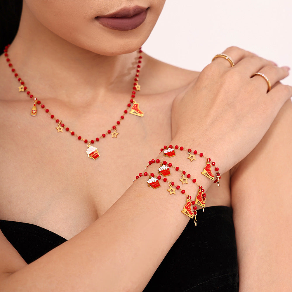 Celebrate the magic of the season with this elegant Christmas Enamel Necklace and Bracelet Set, featuring charming pendants shaped like an ice skate, star, and champagne glass — each symbolizing joy, dreams, and celebration.