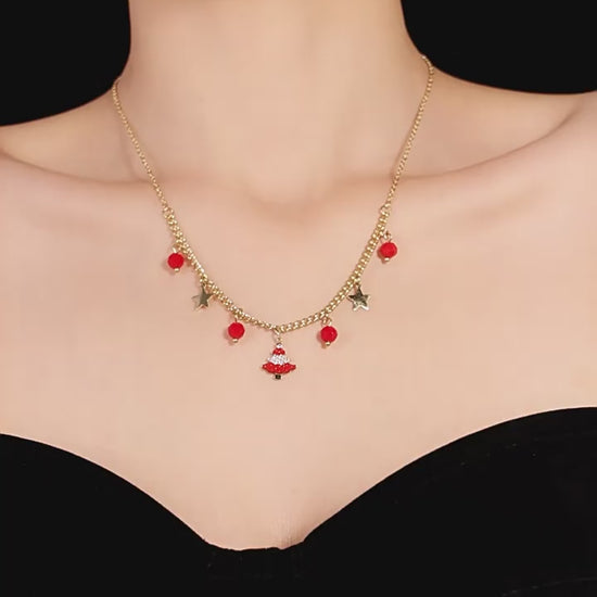This double-layered Christmas necklace and bracelet set brings together playful holiday motifs—a Christmas tree, star, and apple—crafted from durable stainless steel and finished in luxurious gold plating.