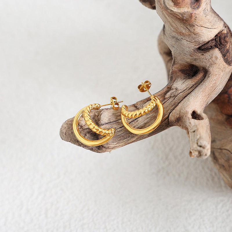 ✨ Double-Layer C-Shaped Hoop Earrings – Modern, Minimal, Elevated