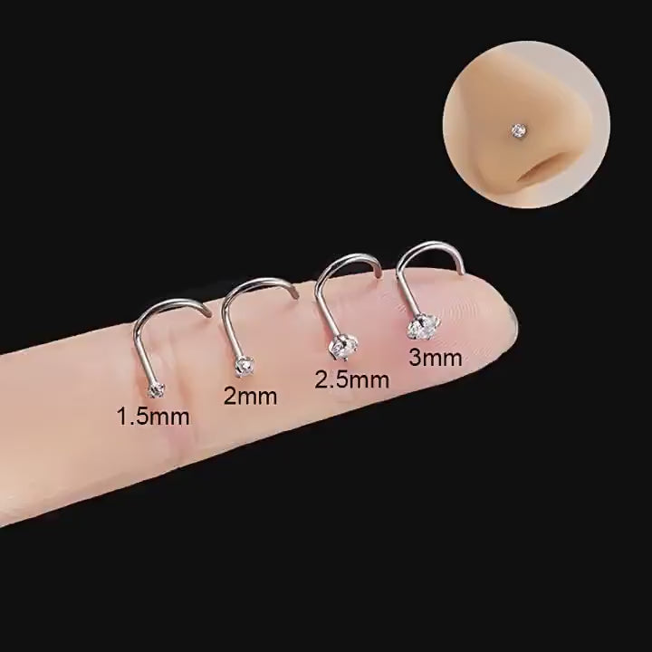 F136 Titanium Zircon Nose Stud | S-Shaped Rod Nose Piercing Jewelry | Fashionable & Durable